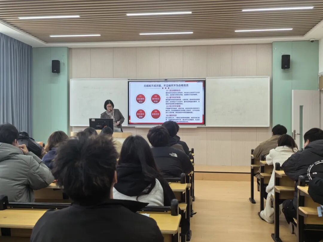 课程中,龚老师紧密结合建工专业特色,将端正入党动机这一命题生动具象化。她以建筑工程中的“隐蔽工程”类比初心纯度,指出功利、从众等错误动机如同地基隐患,必须主动排查、彻底剔除。同时,她借用“合格地基三维指标”框架,阐明坚定信仰是指引方向的“规划图”,使命担当是支撑事业的“承重墙”,而服务奉献则是凝聚力量的“混凝土”。