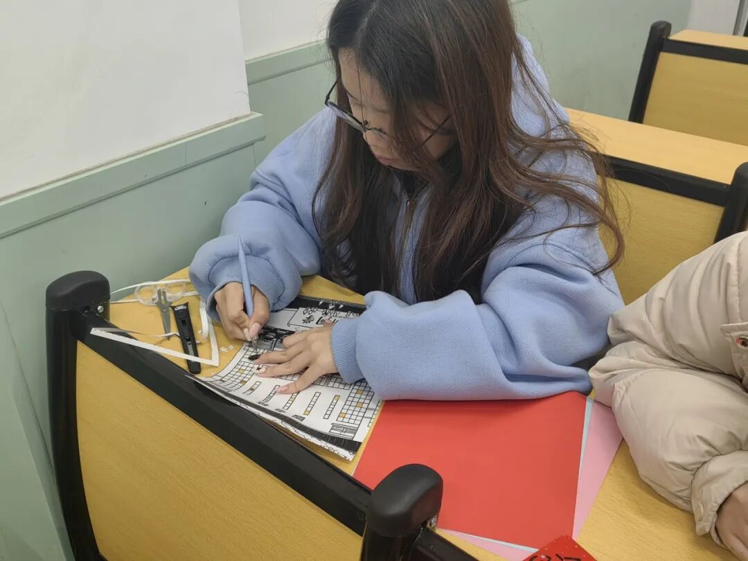 为进一步传承和弘扬中华优秀传统文化,深化长征精神的时代育人价值,丰富校园文化实践活动形式,12 月 9 日及12月10日,在1 号教学楼 1201 教室,一场以“话长征·传文化——拓印书签剪纸,镌刻马年雅韵”为主题的活动在此热烈开展,全体同学齐聚一堂,沉浸于传统文化与长征精神交融的奇妙氛围之中。