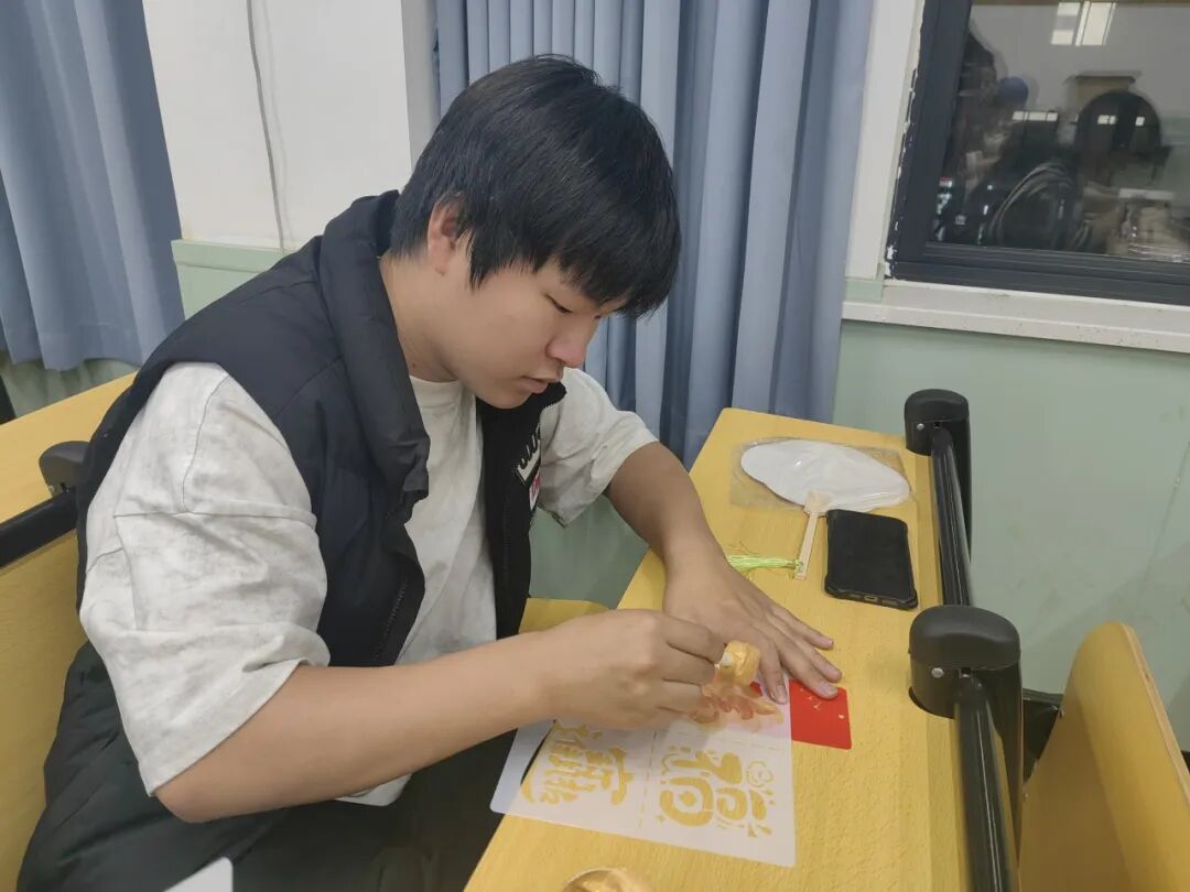活动开始,桌上摆放的拓印工具、五彩纸张和剪刀吸引了同学们的目光。在专业老师讲解示范后,大家投入马年拓印学习,手持工具在宣纸上拓印出栩栩如生的骏马图案,神情专注,敬畏热爱传统文化,仿佛与古人传递文化脉络。经过尝试调整,精美拓印作品呈现,同学们满心喜悦。