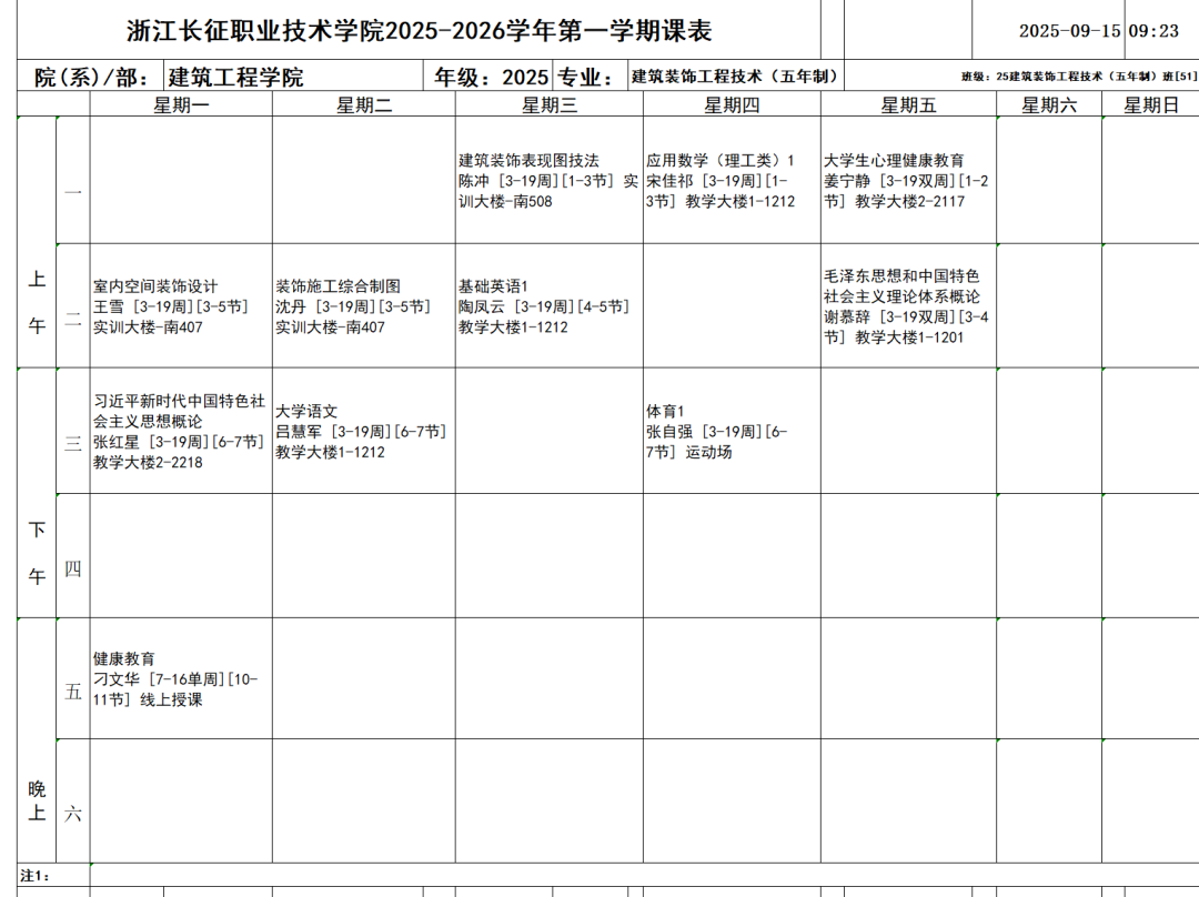 9月22日建工通知 | 建筑工程学院25级五年制新生课表