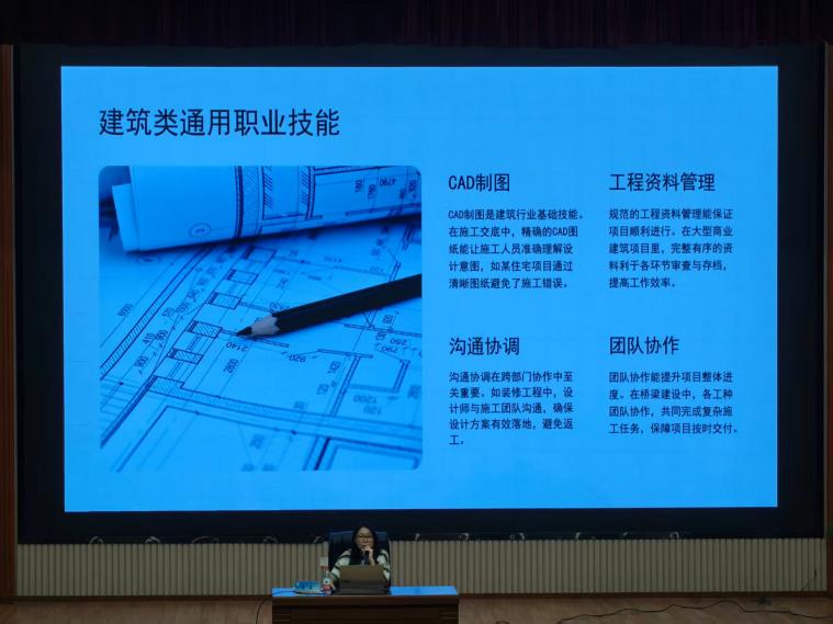本次课围绕行业发展与职业方向、职业分布与区域需求特征、核心技能培养与职业资格证书、就业策略与权益保障四大板块展开。李老师结合自身经历与行业现状,详细介绍了建筑工程类行业的产业链结构、就业容量,以及工程造价、建筑工程技术、室内设计等专业对应的核心岗位,如造价师、施工员、质量检查员等。她深入讲解了不同岗位的工作内容、薪资特点与区域分布,指出一线城市岗位集中但加班常态化,古建筑修护类岗位需求少但政策支持度高。