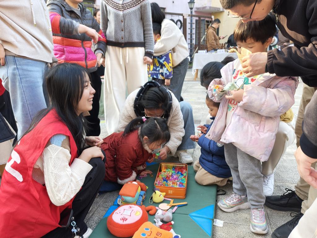 他们引导孩子们整理义卖物品,从绘本、文具到手工制品、毛绒玩具,每一件物品都承载着孩子们的纯真善意。同时,队友们主动承担现场引导、收款结算等工作,认真核对每一笔善款,确保爱心传递精准高效。